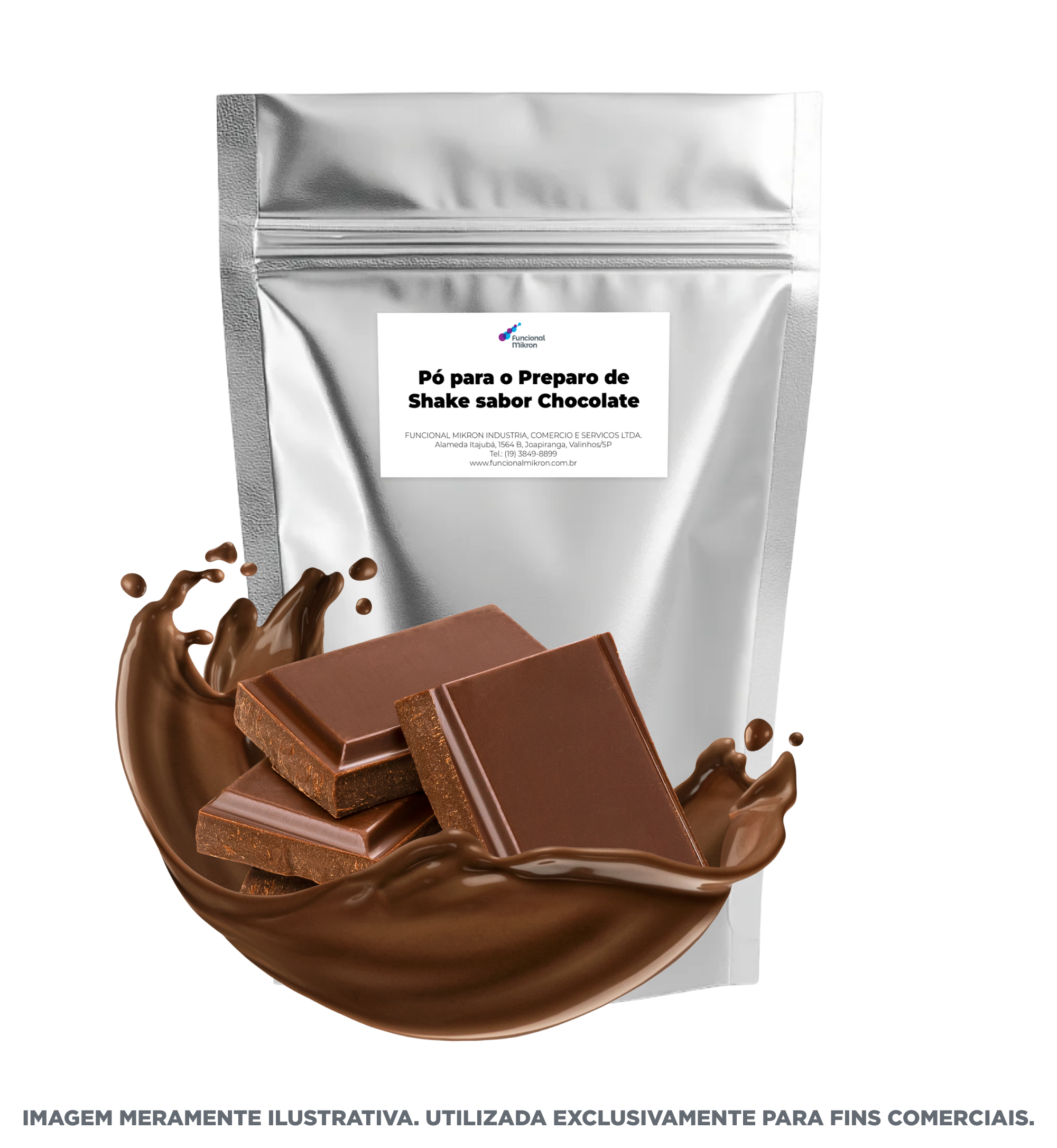 Mistura em pó — base para preparo de shake sabor chocolate.