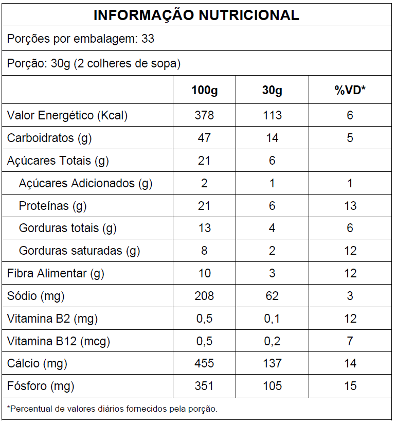 Alergênicos: contém derivados de leite e soja.