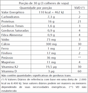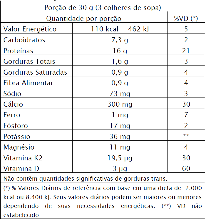 - Recomenda-se adicionar 30 g do pó em 200 mL de leite, agitando até completa dissolução.